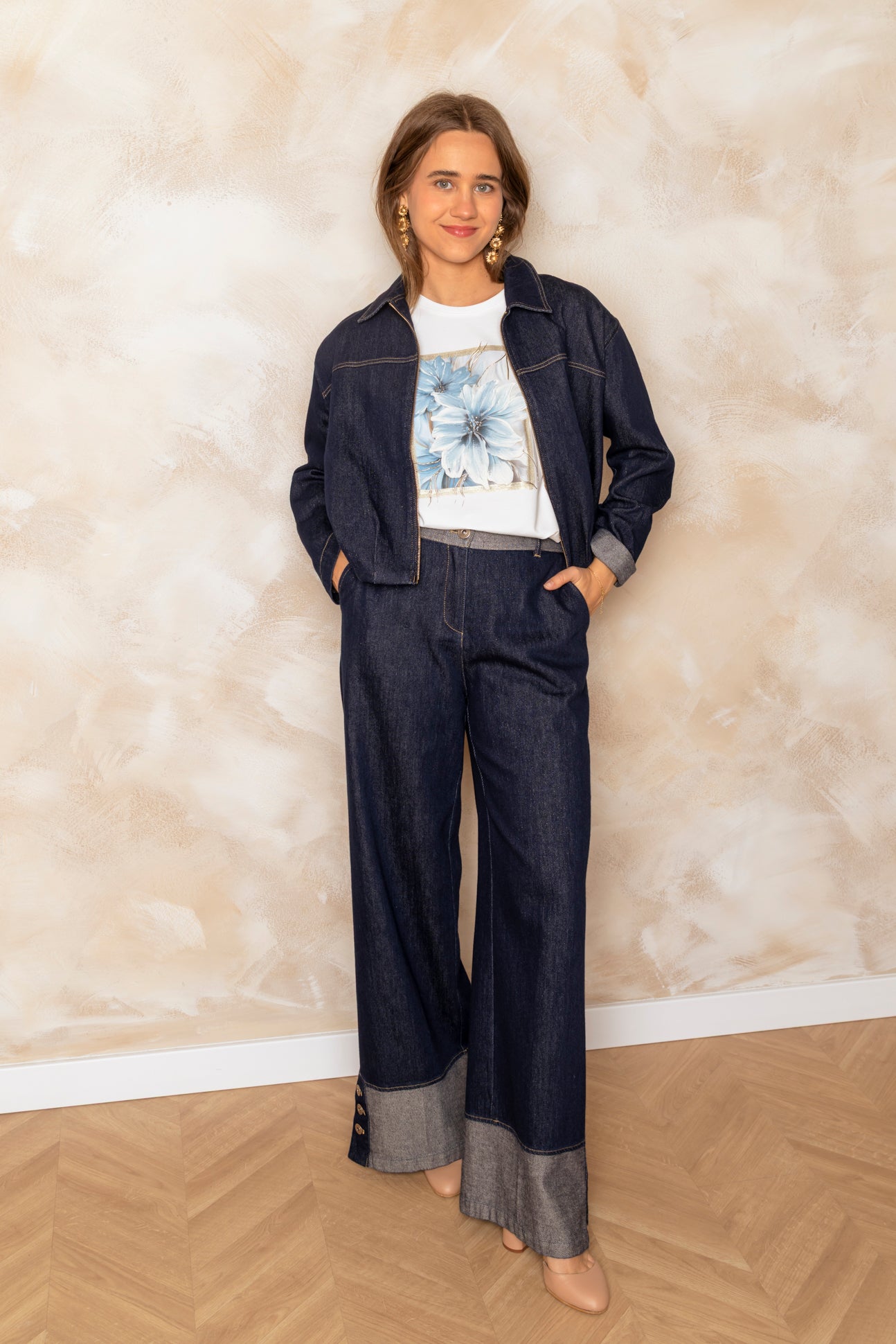 Combínala con el pantalón vaquero a juego y la camiseta floral para crear un look moderno, cómodo y muy favorecedor.