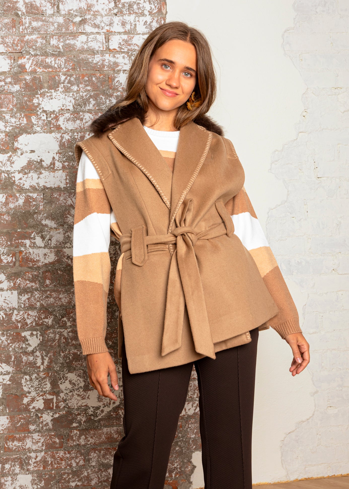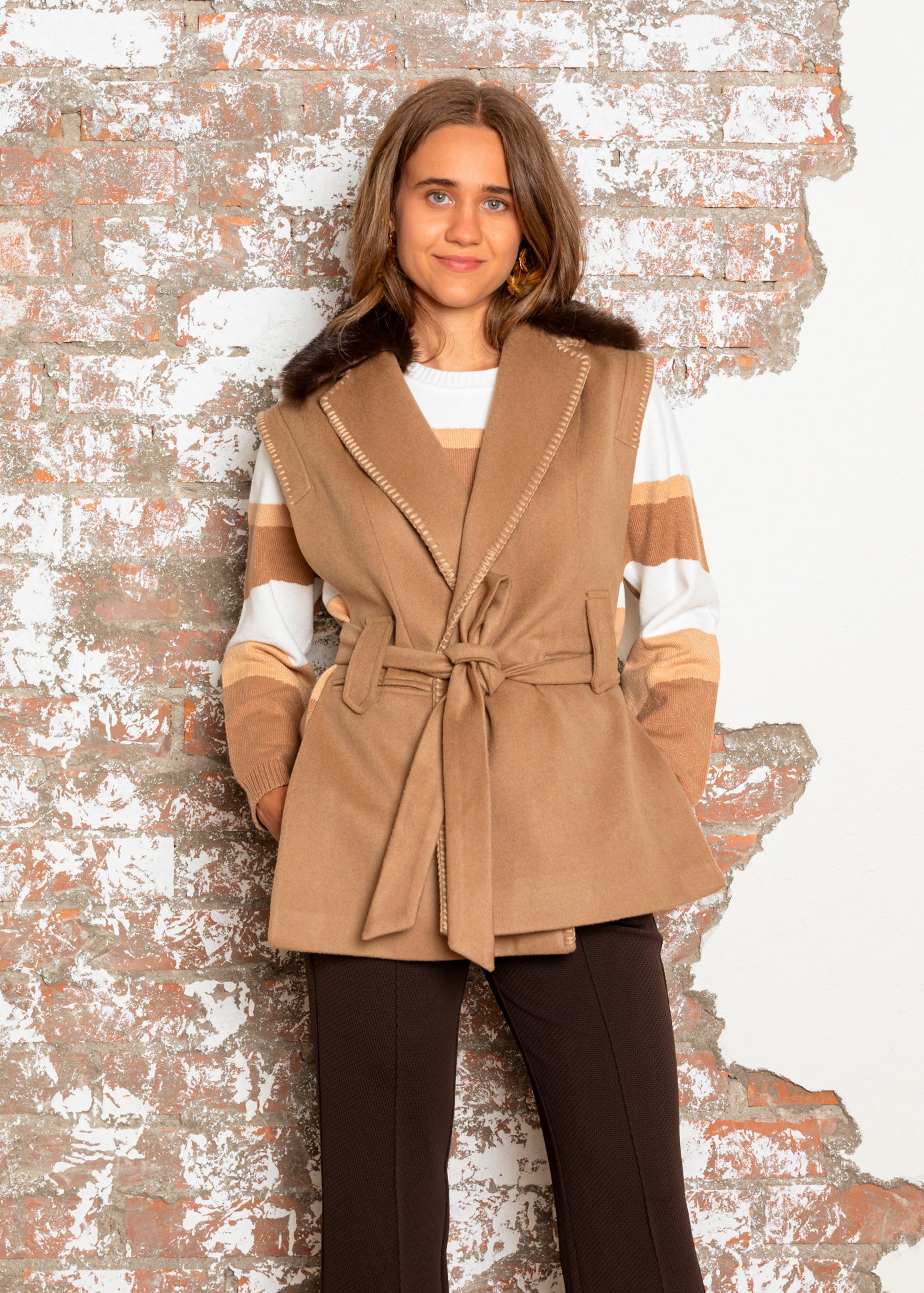 Chaleco de lana con cuello sintético desmontable , es ideal para llevar encima de un jersey o de una chaqueta , es un complemento que da estilo a cualquier prenda. El color es muy combinable con todos los colores de esta temporada