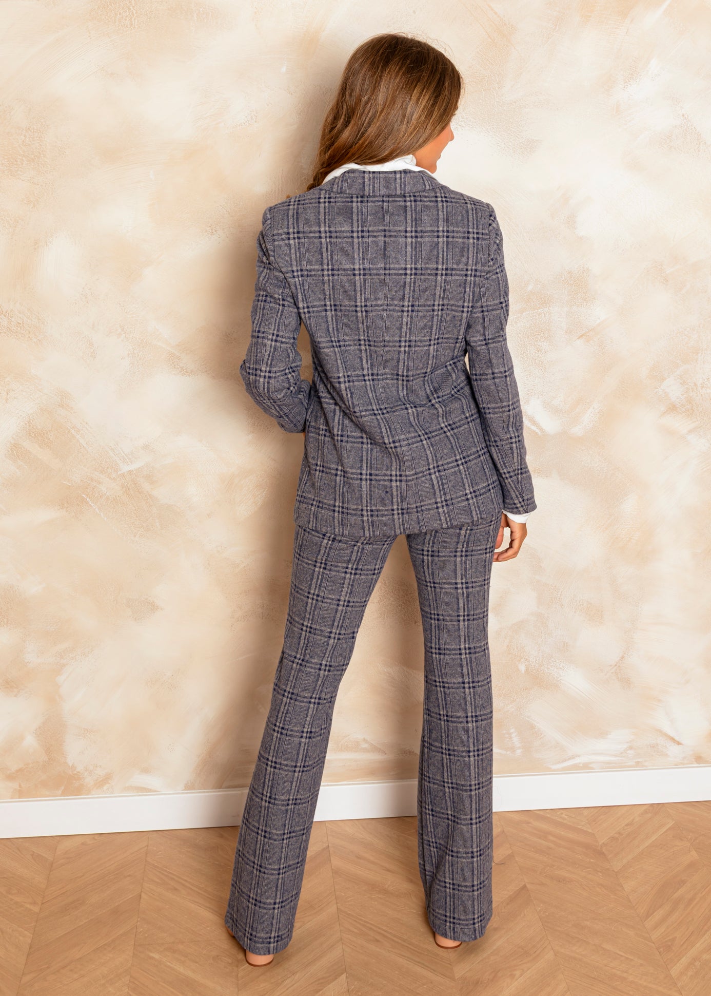 Blazer  con cuadros de Principe de  Gales azules un poco elástica lo que hace que se adapte perfectamente al cuerpo. Ideal para combinar con su pantalón a juego