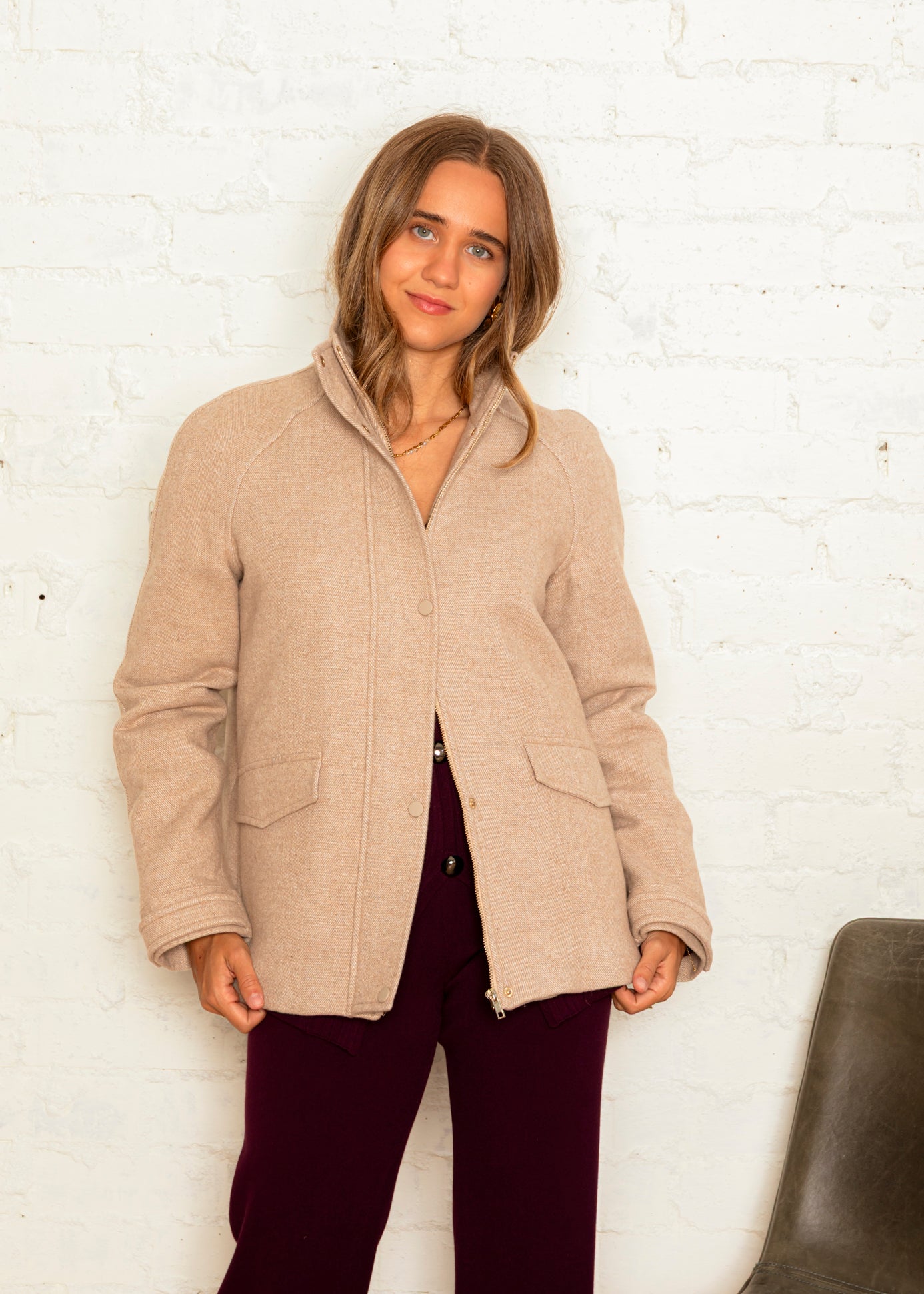 Chaquetón con mezcla de lana y tendel. Estos colores neutros son un básico en nuestro armario