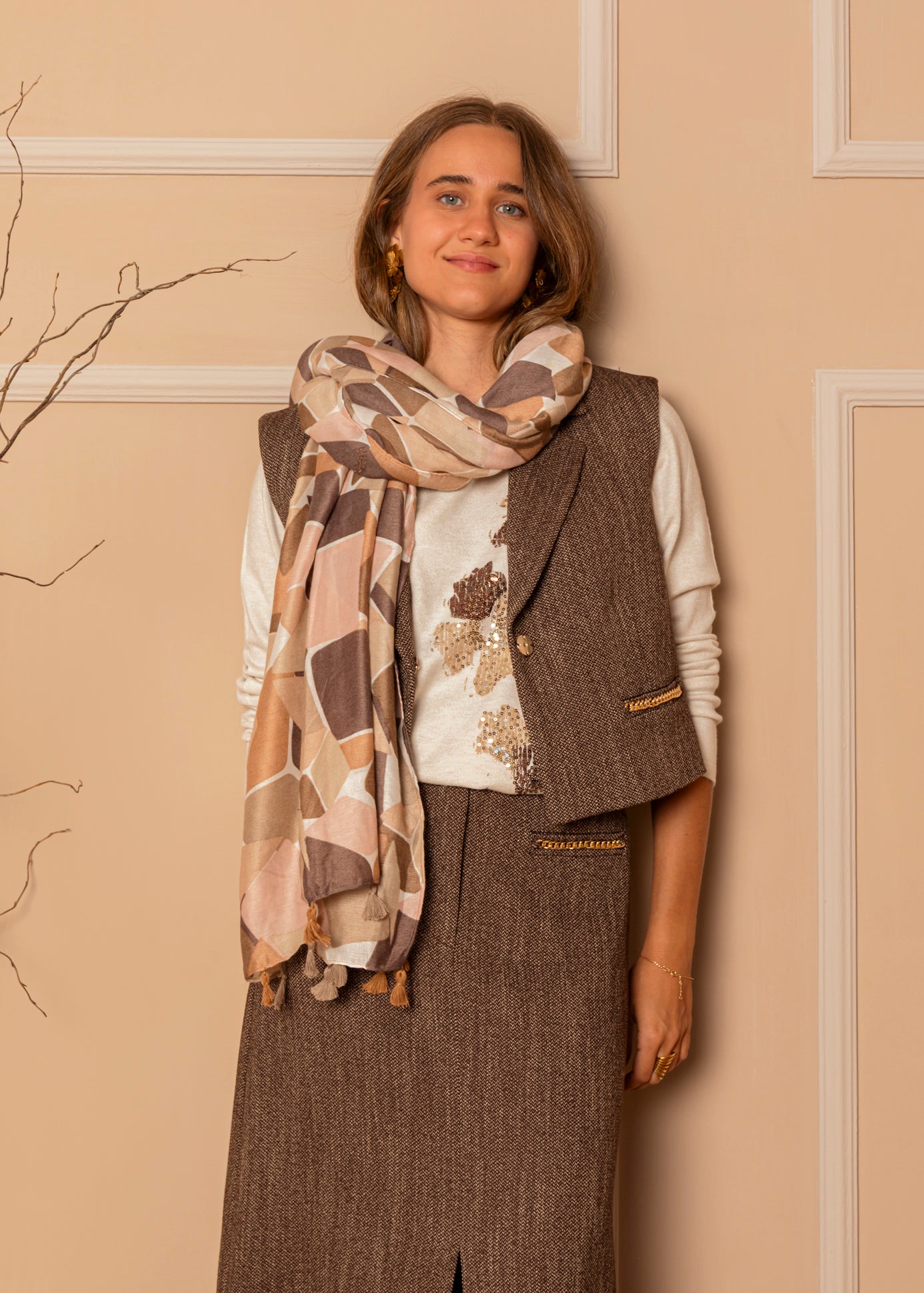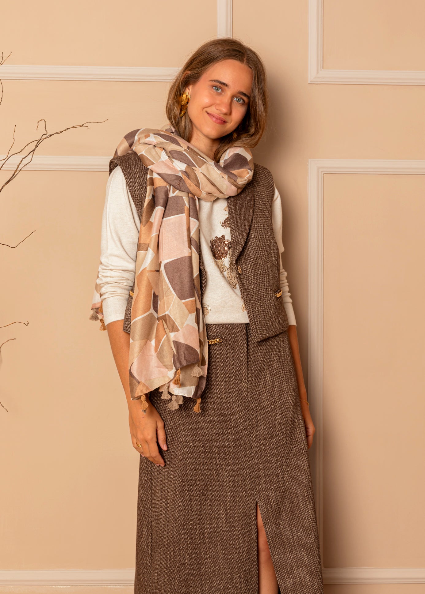 Falda de espiguilla con cintura elastica. Combinalá con su chaleco a tono para darle un aire más sofisticado